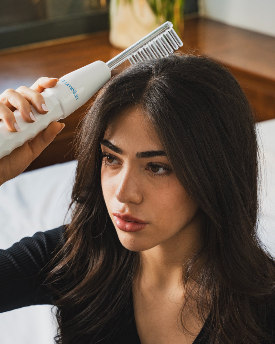 The wand increases blood circulation to the scalp, stimulates hair follicles, and helps reduce hair thinning.